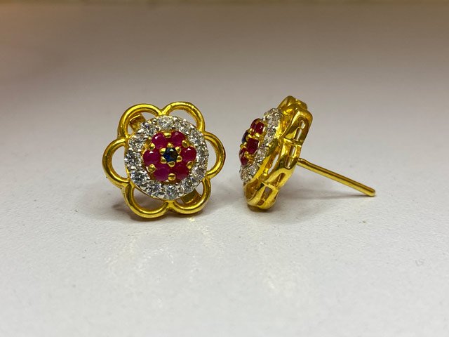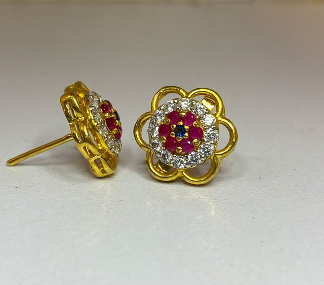 Stone Colors = Rubies, Blue Sapphire & White Zircons ( Synthetic )