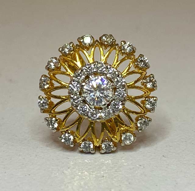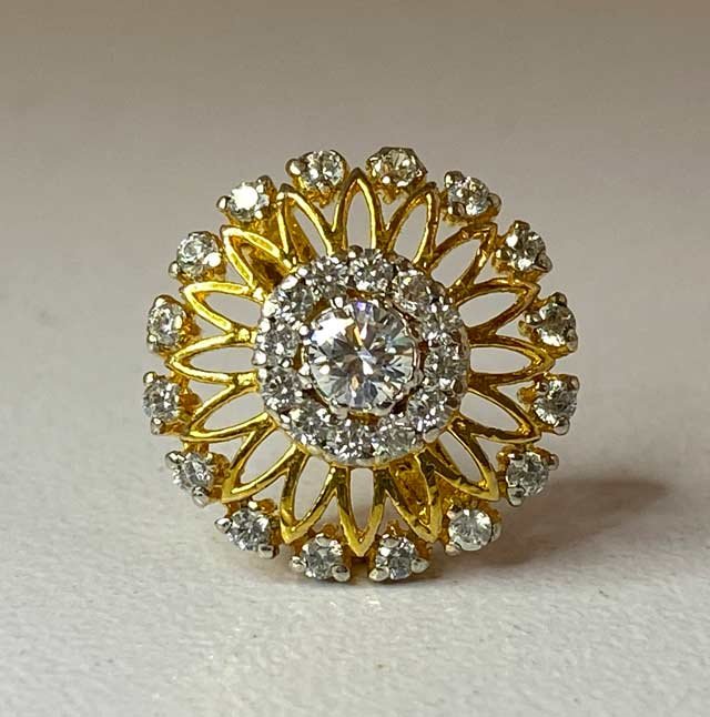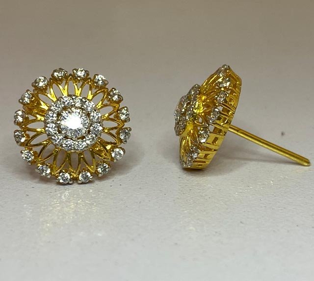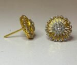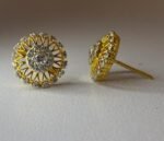Pair of Tops featuring a Floral Design, Crafted with a two toned metal and adorned with small cubic zircons.