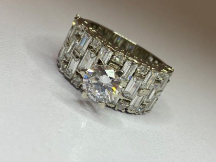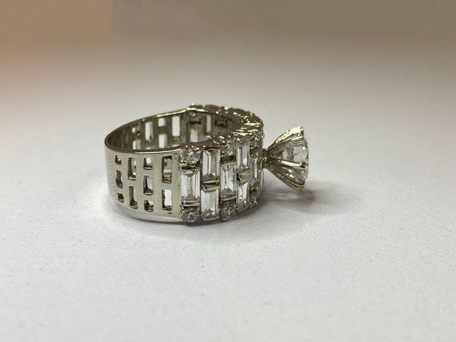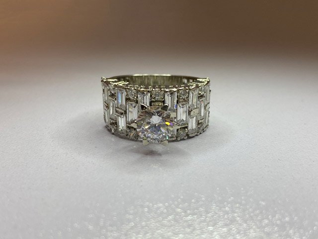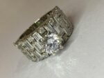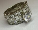 Elevate your elegance with this stunning 925 Sterling Silver Ring, crafted in a luxurious white polished finish. At its heart, a dazzling solitaire-style white zircon captures the eye, radiating brilliance and sophistication. The broad band is richly adorned with rows of sparkling white zircons, set in bracket-style patterns that add dimension and glamour. Each detail is designed to captivate—creating a statement piece so alluring, it draws admiration and desire from everyone who sees it.