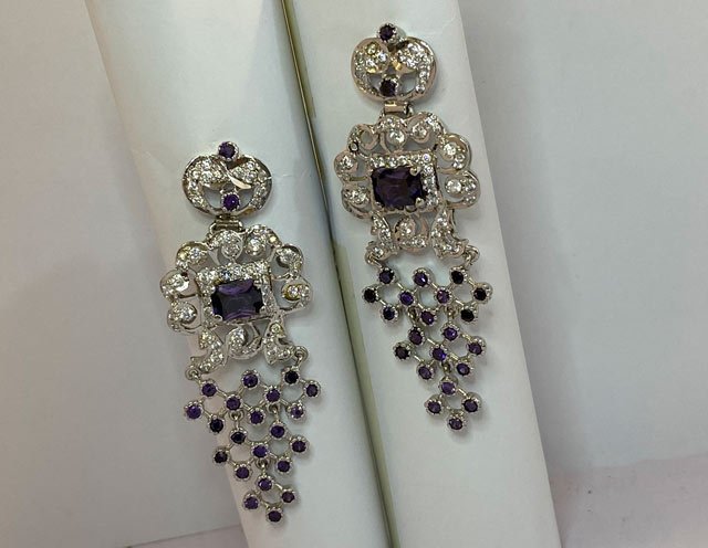 Stone Name = Amethyst & White Zircons ( Synthetic )