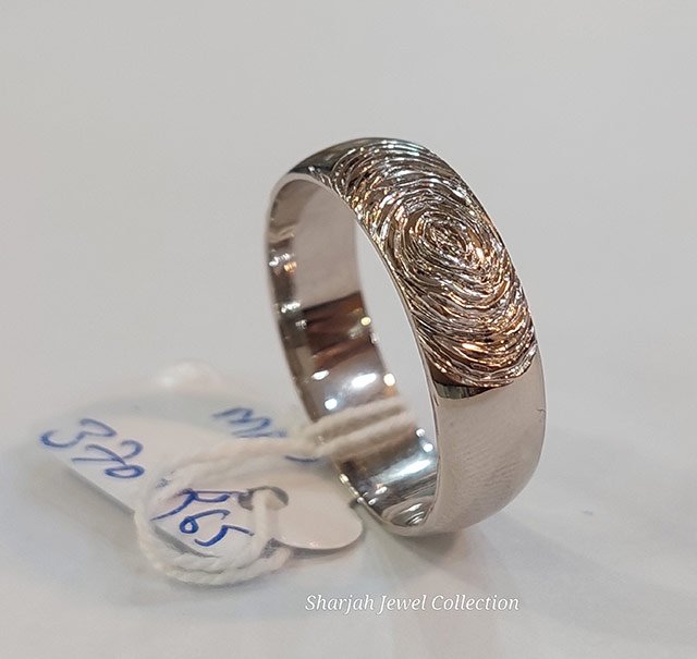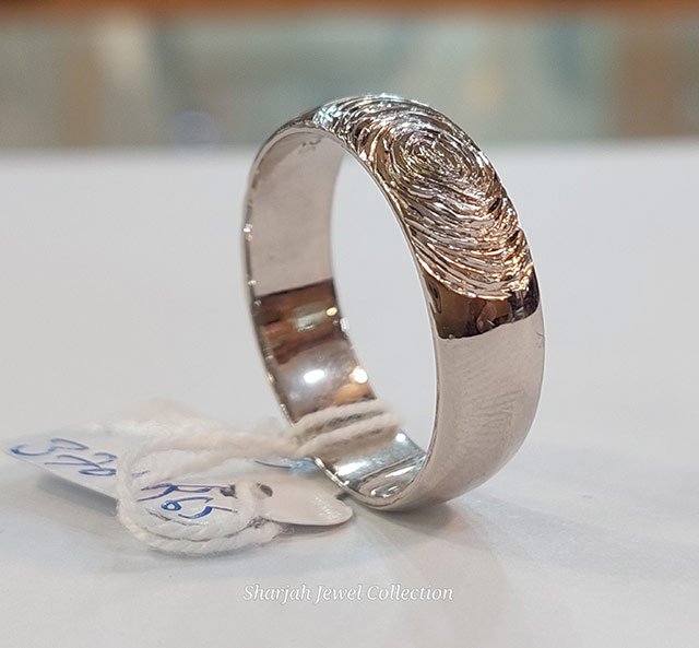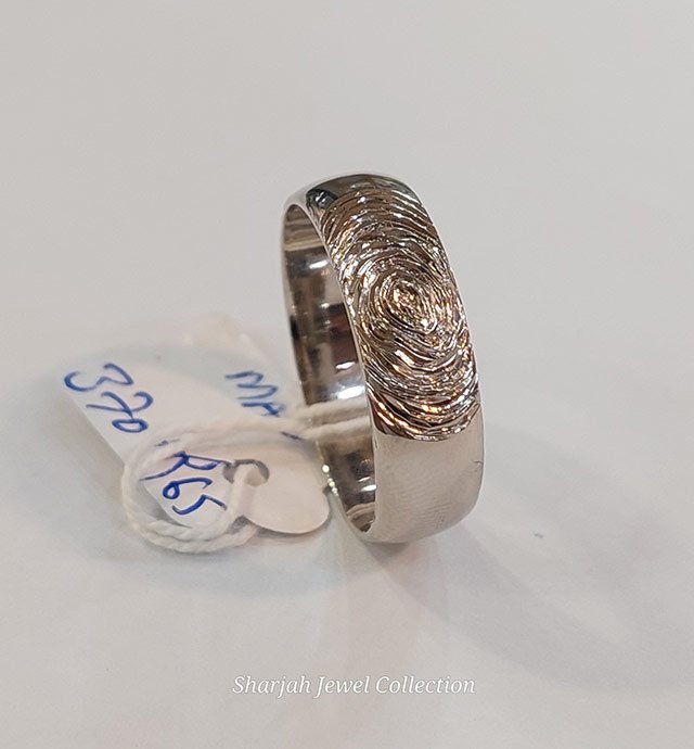 Unique Silver Fingerprint Band: A heartfelt keepsake featuring an intricately engraved fingerprint, crafted in durable silver. A beautiful way to cherish memories and celebrate love.