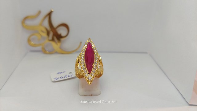– Marquise-cut pinkish-red stone (0.6 cm x 3 cm)