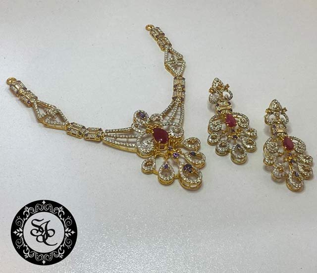 Elevate your elegance with this exquisite necklace set, crafted in 925 sterling silver with luxurious two-toned plating. Featuring a vibrant medley of rubies, amethyst, honey, and white zircons, each stone is meticulously set to create a dazzling symphony of color and sparkle. Perfect for both special occasions and refined everyday wear, this set blends timeless charm with modern sophistication.