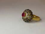 Synthetic Ruby Round Cut Halo Ring