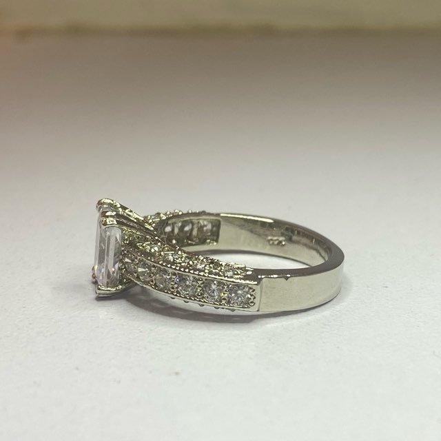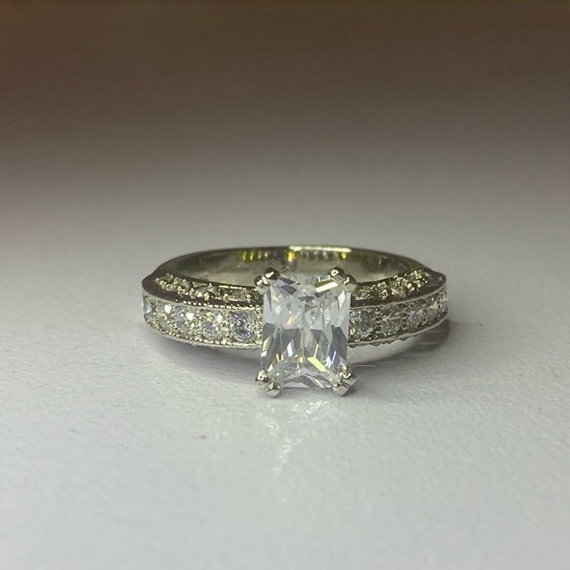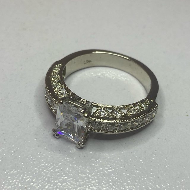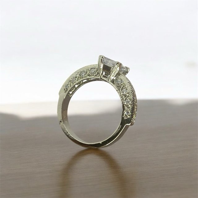 The ring has a classic yet elegant design, suitable for an engagement ring.