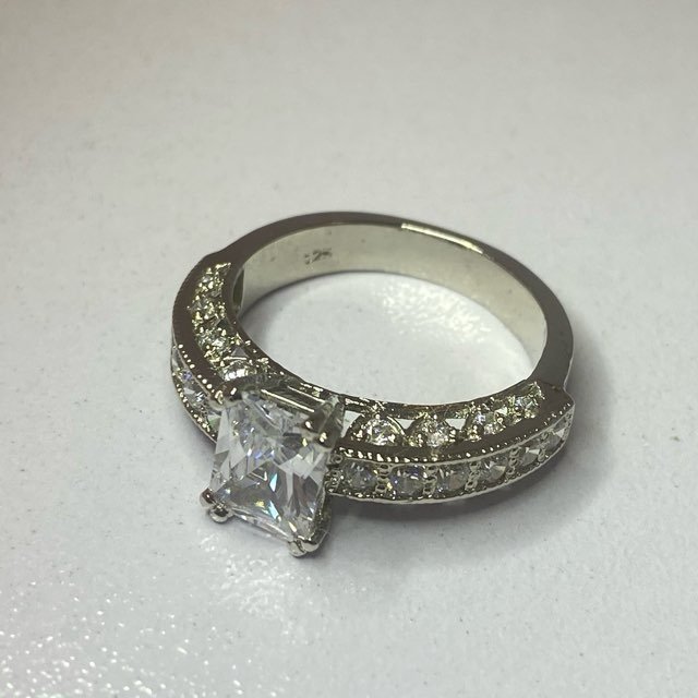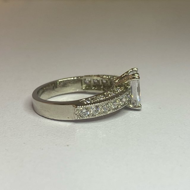 The additional zircons on the band add extra sparkle and detail.Â
